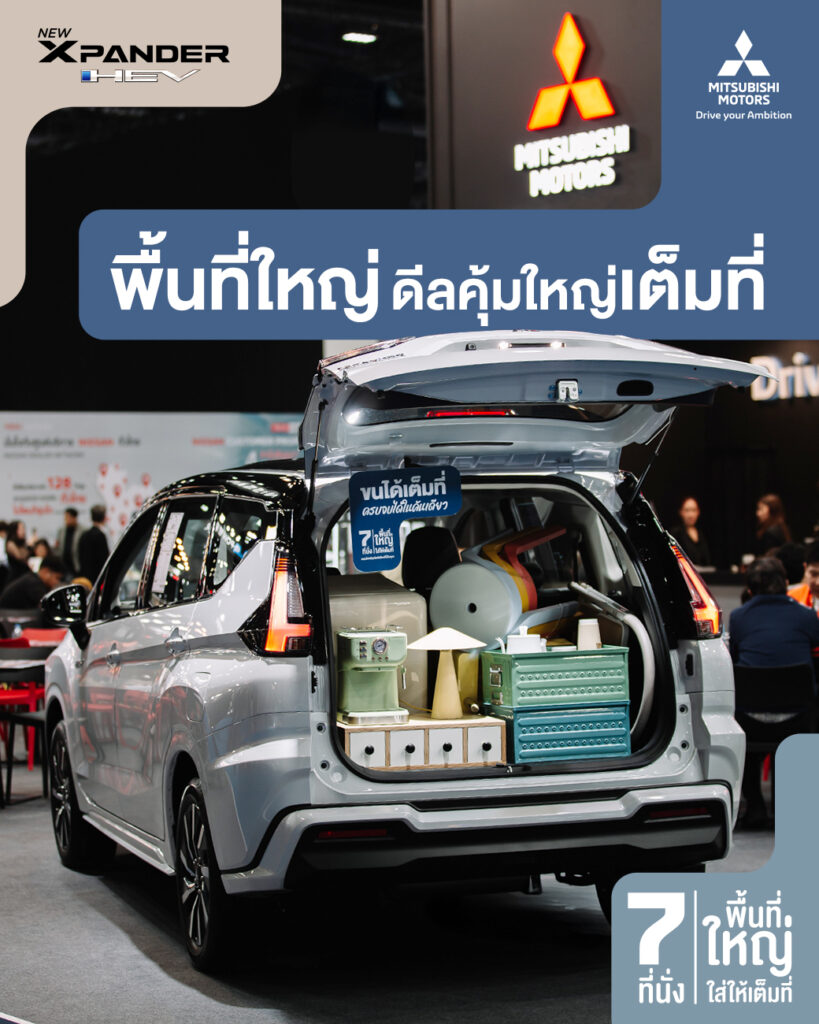 พื้นที่ใหญ่ ดีลก็ใหญ่ คุ้มเต็มที่! New Mitsubishi Xpander HEV ไฮบริด 7 ที่นั่ง ปรับพับเบาะได้หลากหลาย ขยายสเปซได้กว้างขึ้น เป็นเจ้าของได้ง่ายๆ วันนี้ กับข้อเสนอ Motor Show ดอกเบี้ยพิเศษ 0%* หรือ ผ่อนเริ่มต้น 6,672 บาท* ฟรี ประกันภัยชั้นหนึ่ง นาน 1 ปี ขยายระยะเวลารับประกันนานสูงสุด 7 ปี ลูกค้าเก่ารับส่วนลดเพิ่มอีก 10,000 บาท สมาชิกหอการค้าไทยและจังหวัด รับส่วนลดเพิ่มสูงสุด 15,000 บาท วันนี้ – 5 เม.ย. 69 พบกันที่งาน Motor Show ชาเลนเจอร์ ฮอลล์ 1-3 เมืองทองธานี และโชว์รูมมิตซู เอเบิล *เงื่อนไขเป็นไปตามที่บริษัทฯ กำหนด รายละเอียดเพิ่มเติม: […]