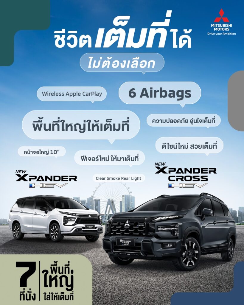 อัปเกรดฟีเจอร์ให้ “เต็มที่” รอบด้าน New Mitsubishi Xpander Cross HEV และ Xpander HEV รถยนต์อเนกประสงค์ 7 ที่นั่ง ให้ชีวิตคุณเต็มที่ได้ แบบไม่ต้องเลือก ความสบาย ✕ ความปลอดภัย พื้นที่ ✕ ดีไซน์ การใช้งาน ✕ การขับขี่ จัดให้ครบ! ให้ชีวิตคุณไปได้มากกว่า Larger than life. พื้นที่ใหญ่ ใส่ให้เต็มที่ ขยายพื้นที่ชีวิตของคุณให้ใหญ่ขึ้นได้แล้ววันนี้ รายละเอียดเพิ่มเติม: https://mmth.site/49G8g2u